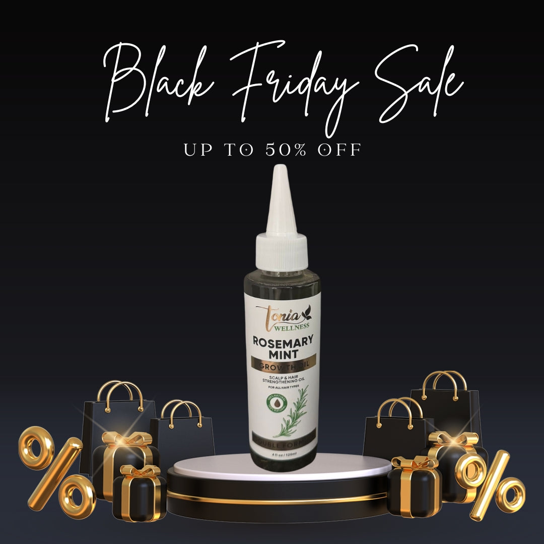 This Black Friday, treat your hair to the ultimate nourishment with our Rosemary Mint Hair Growth Oil. Achieve stronger, fuller, and healthier hair while enjoying exclusive savings!